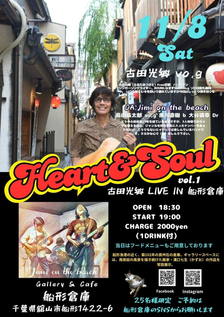 11/8(土)、古田光郷さんをお迎えし、船形倉庫にてのLiveが企画されています。ご予約お待ちしております!